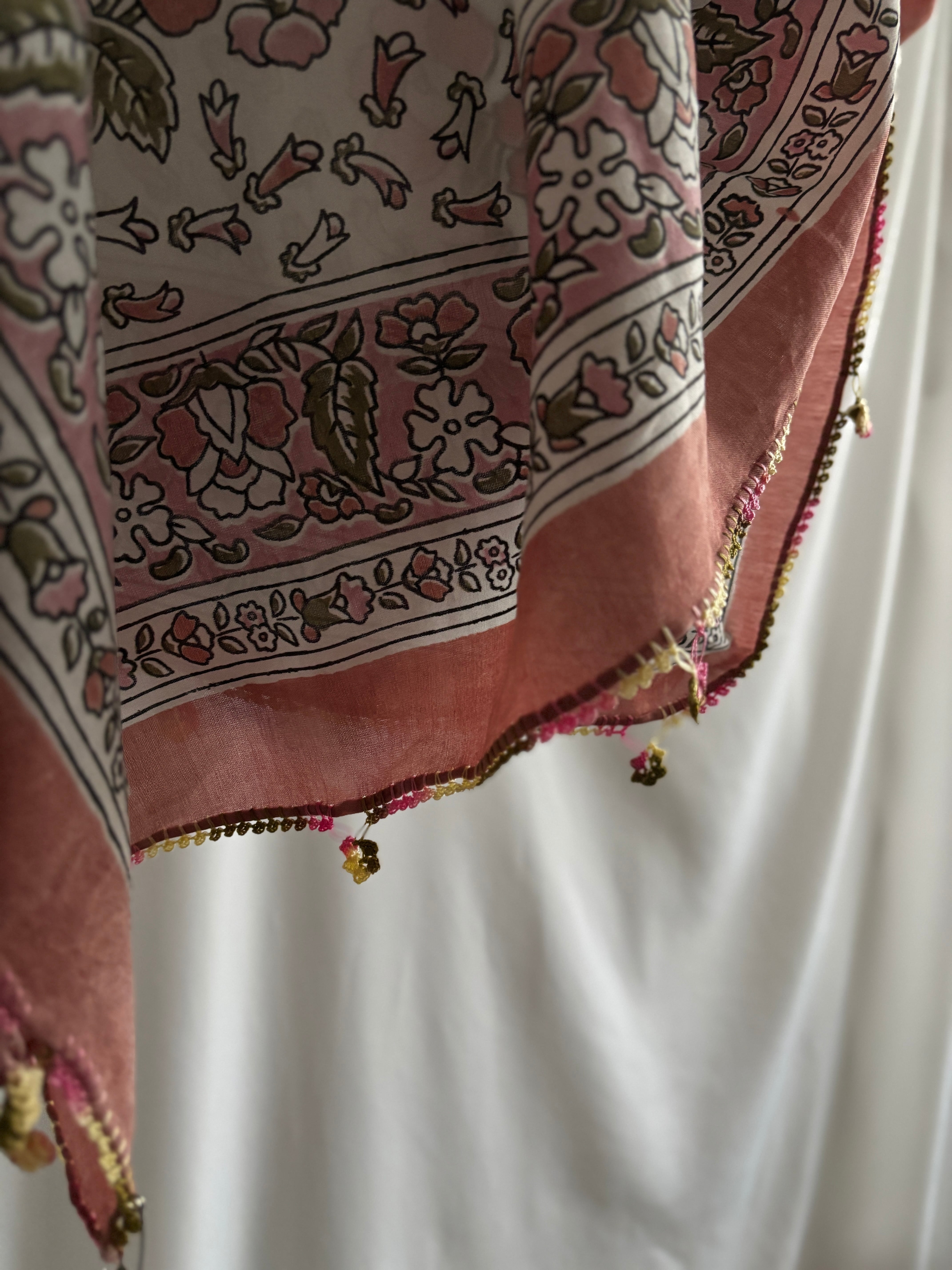 トルコのトカット木版でひとつひとつ手仕事でプリントされた、伝統的な手工芸〈バスク〉と呼ばれるスカーフです。