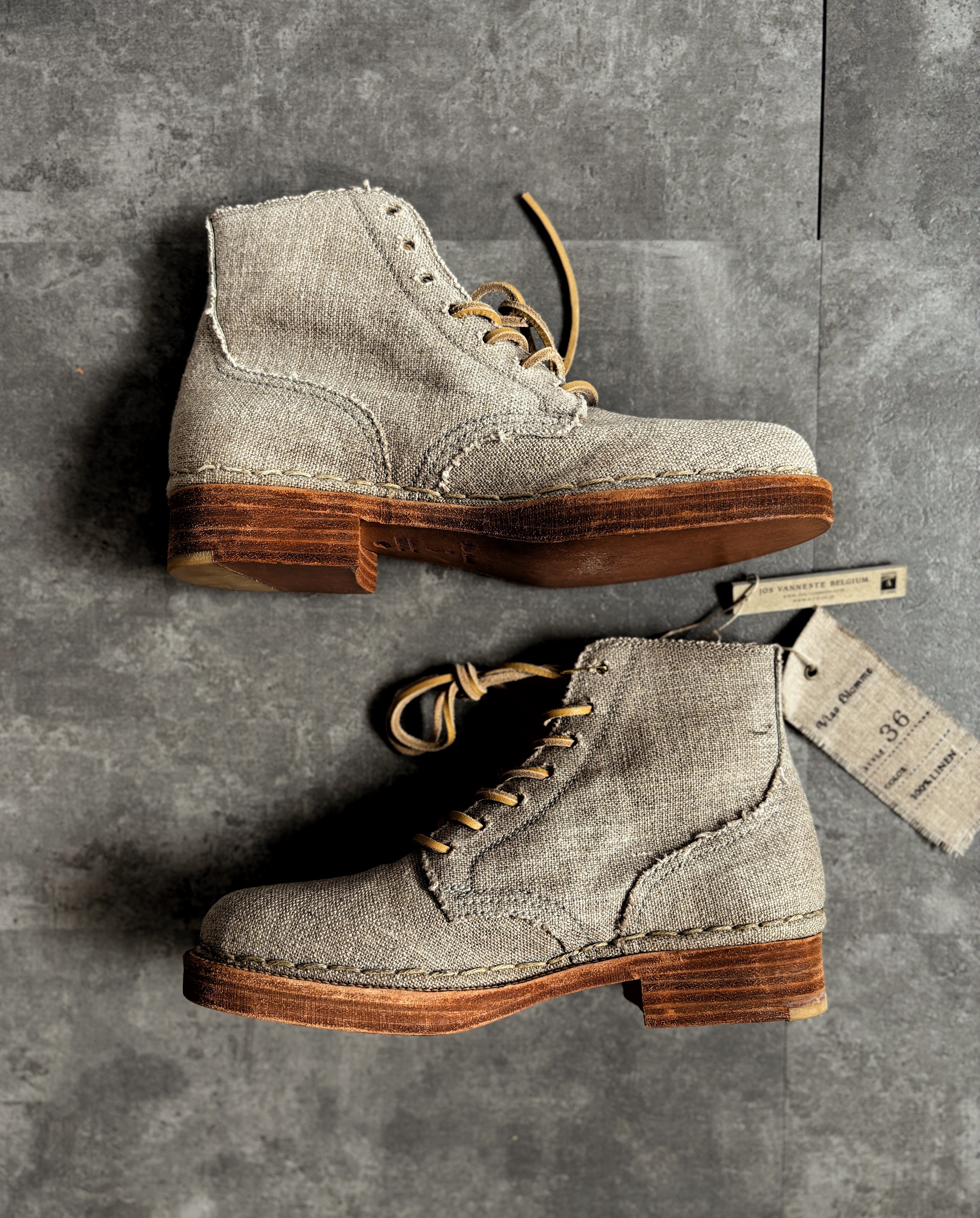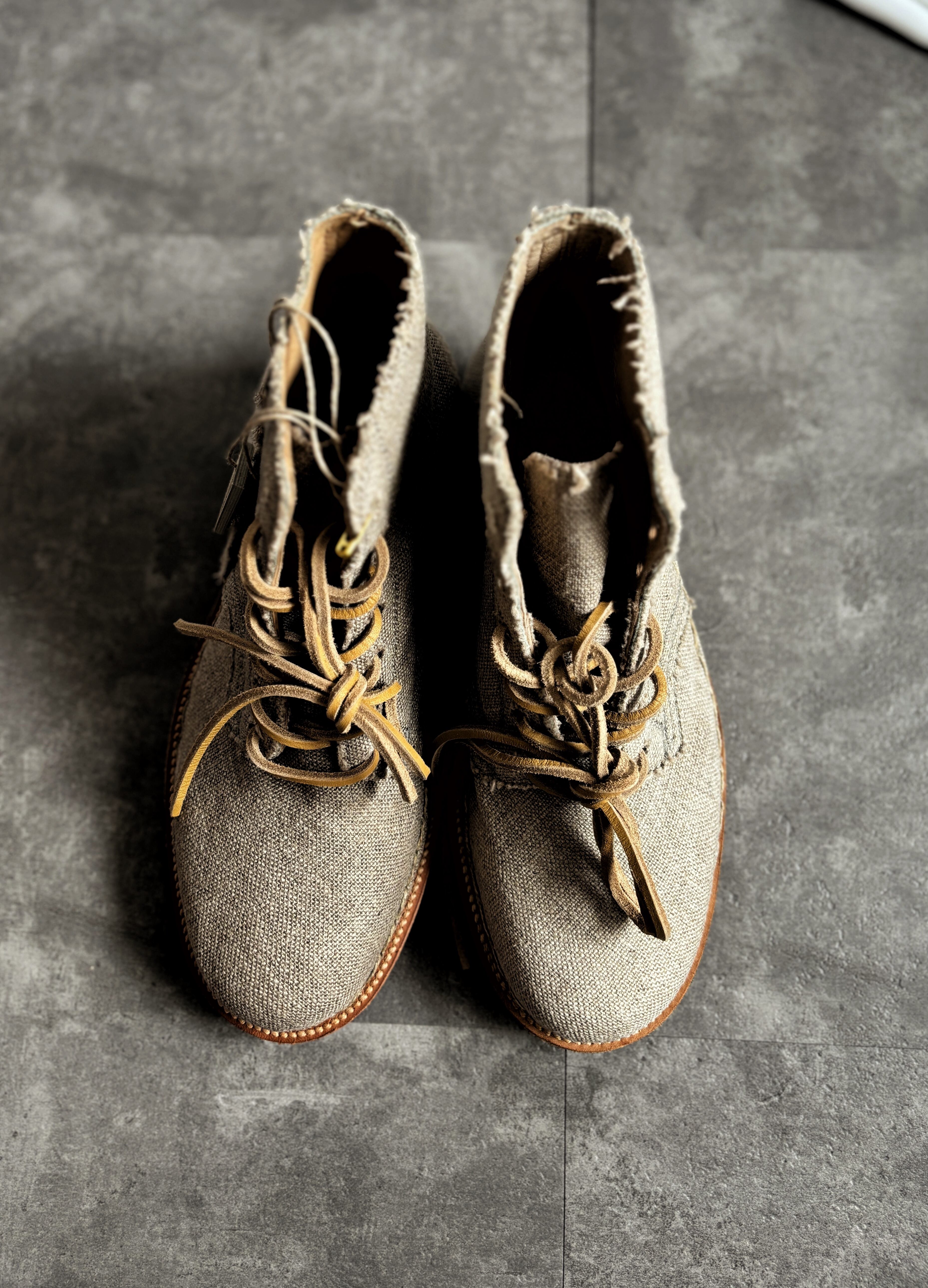 こちらはコルトレイクリネンで仕立てられたショートブーツです。