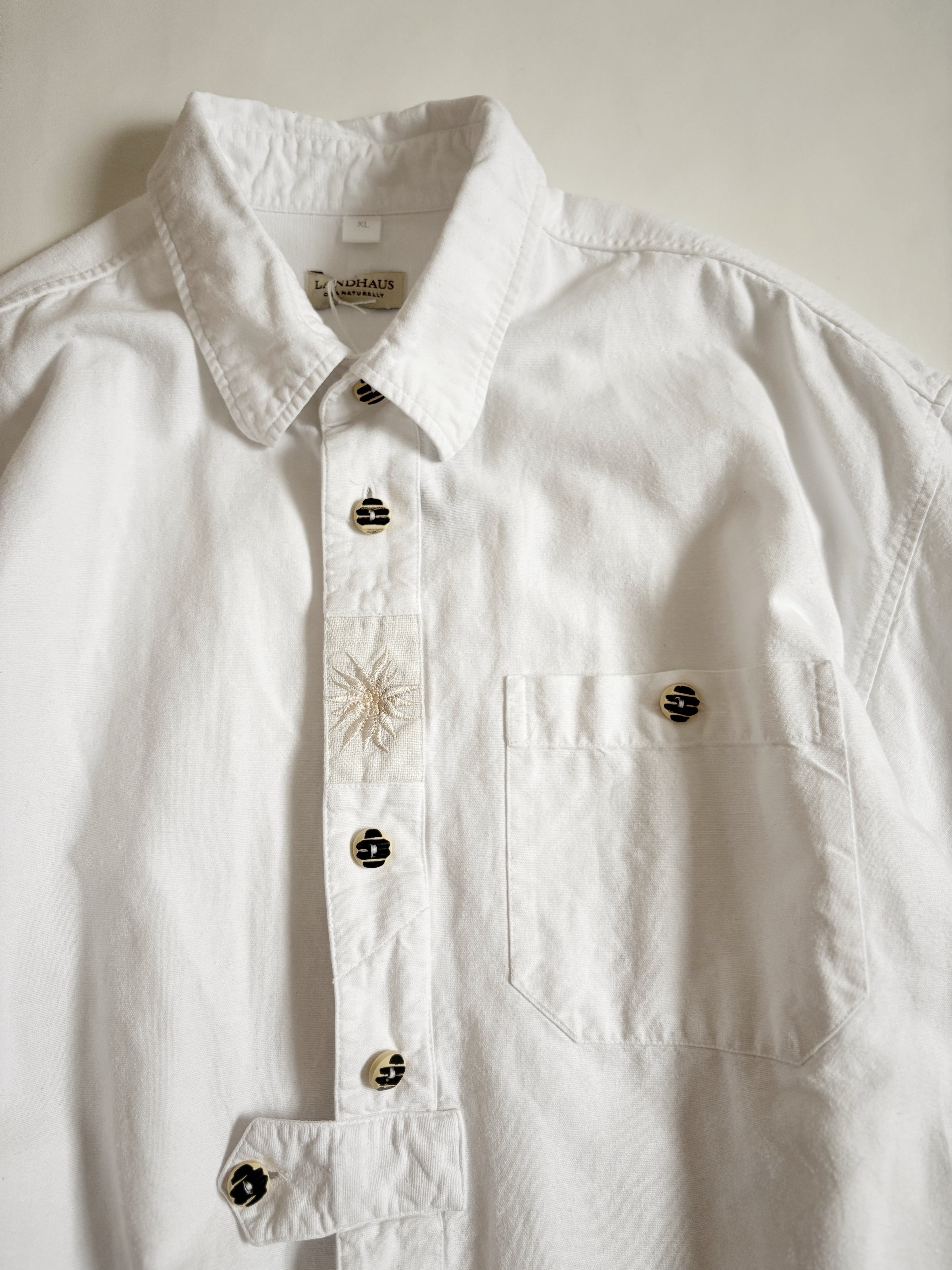 25125 Landhaus チロルシャツ 綿 麻 リネン ヨーロッパ古着 ドイツ 民族衣装 古着 エーデルワイス 刺繍 半袖 ホワイト