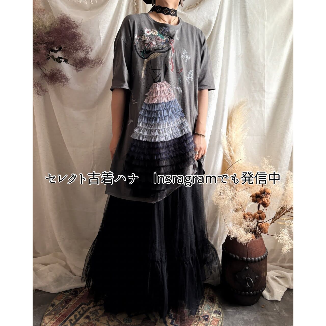 わたくし、テンションが上がっておもわずチュールスカートと合わせてしまいましたが、ジーンズなどとも相性バッチリで、シンプルなコーディネートもいっきに華やかにしてくれる1枚です♪