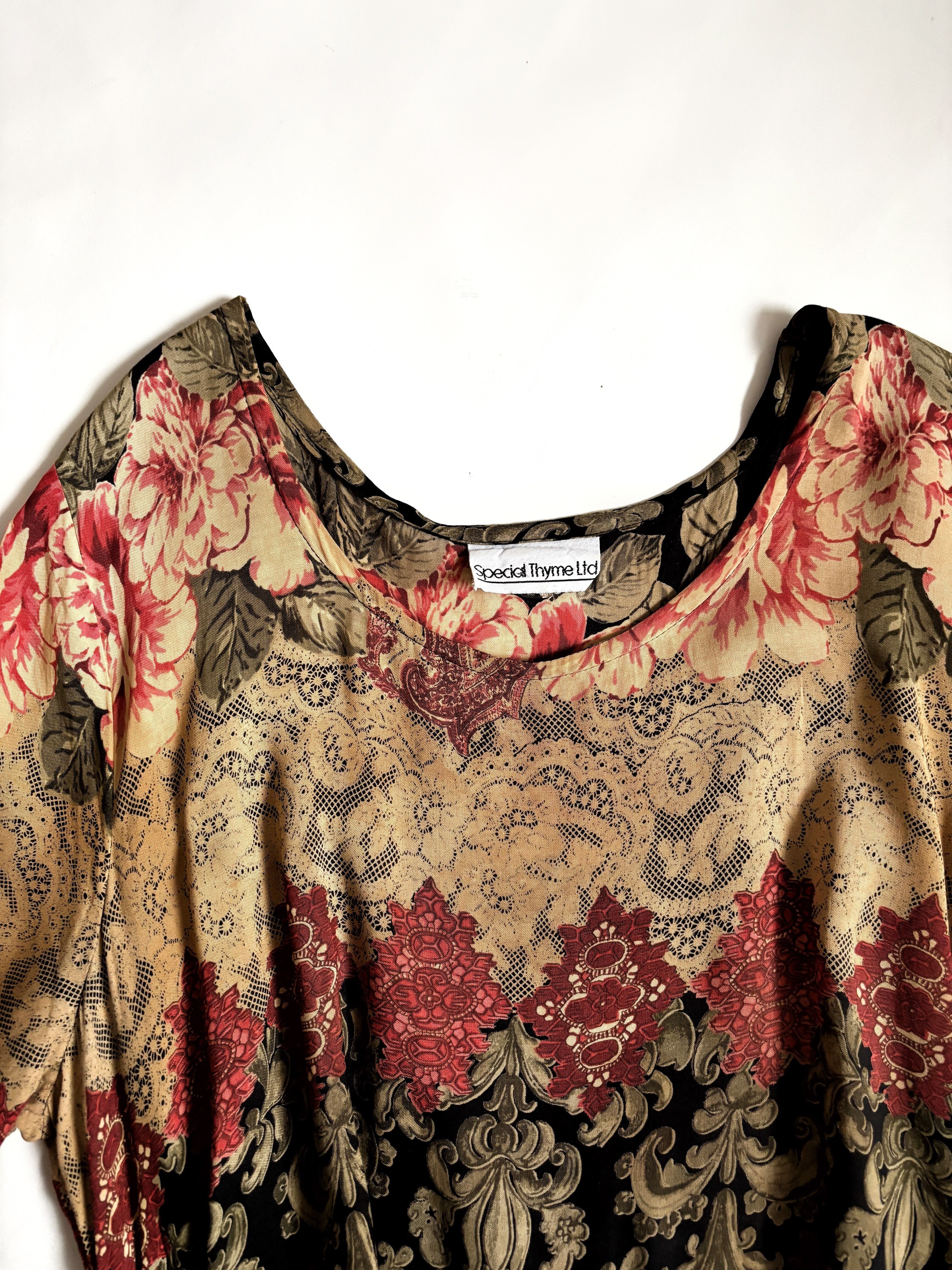緻密なアンティークプリントがなんとも美しい、アメリカ古着のレトロワンピースです。