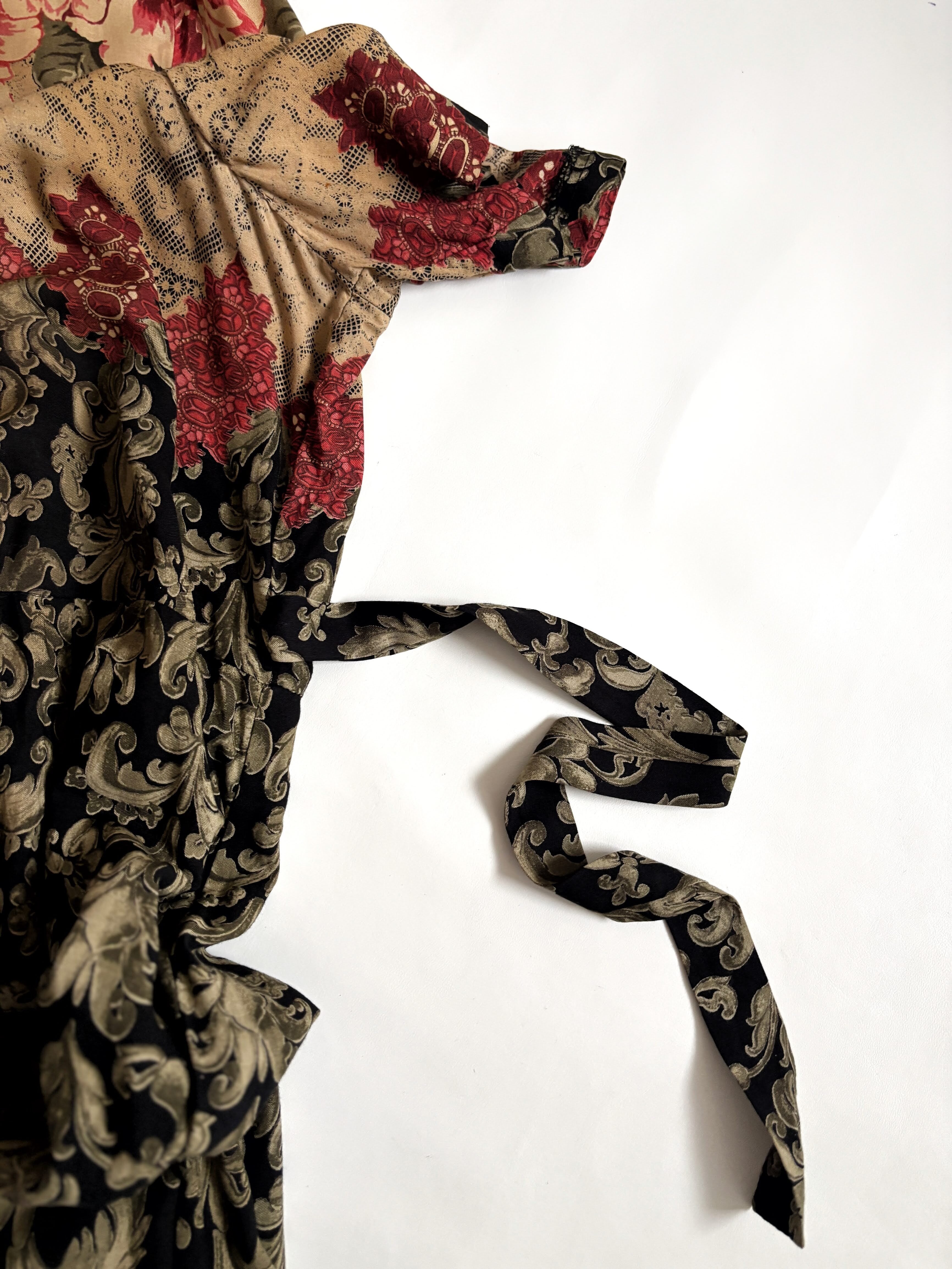 緻密なアンティークプリントのワンピース