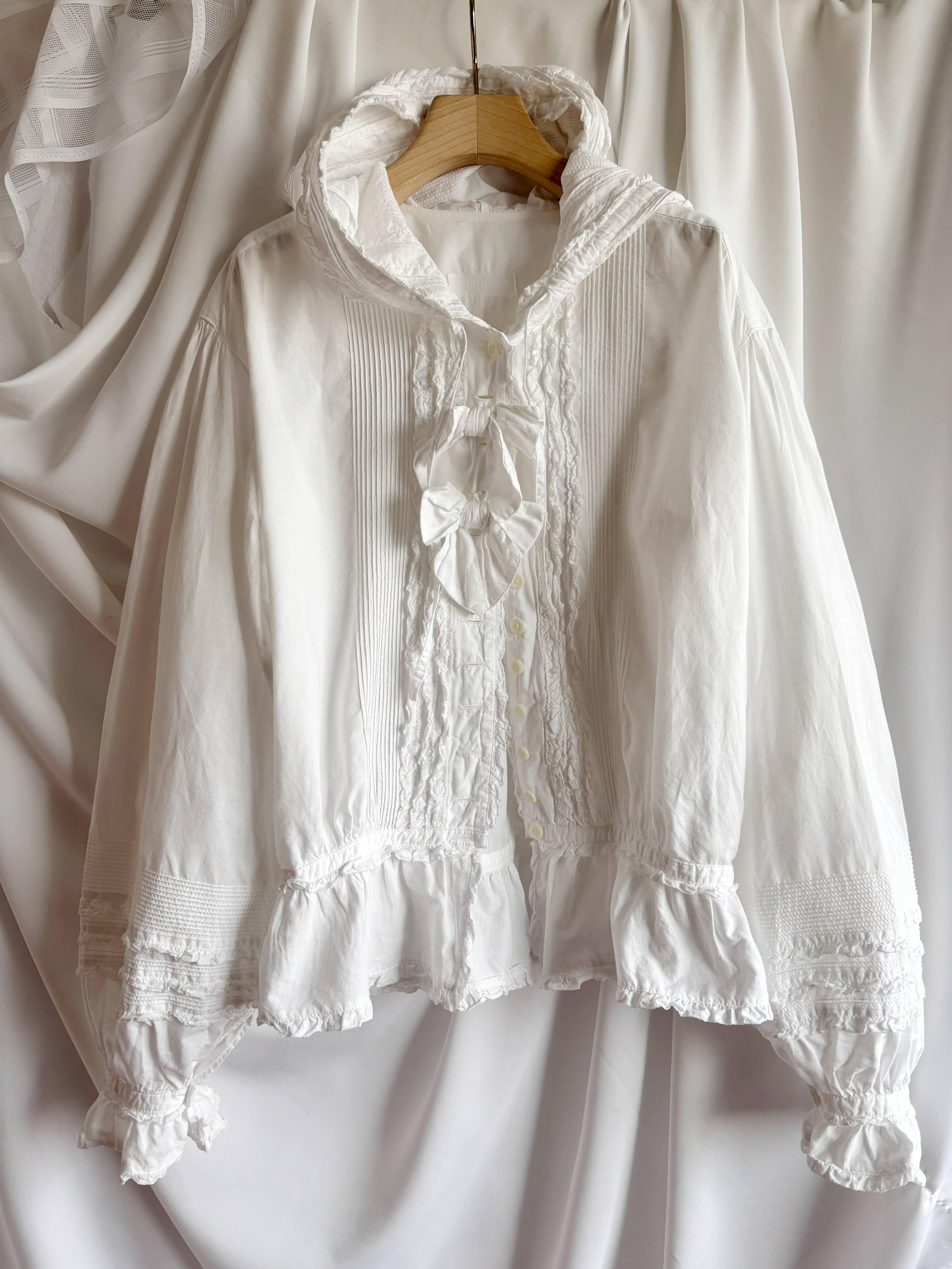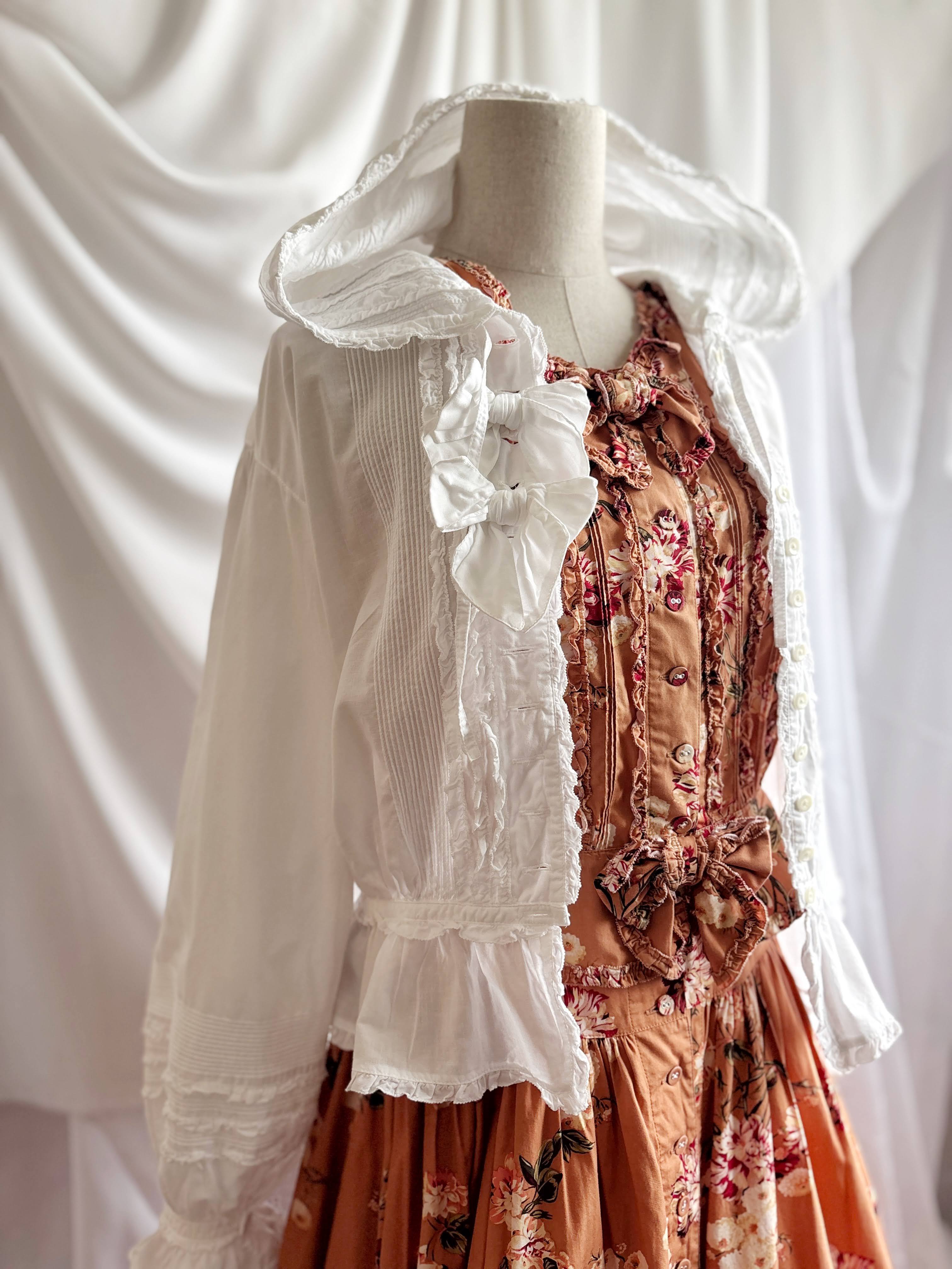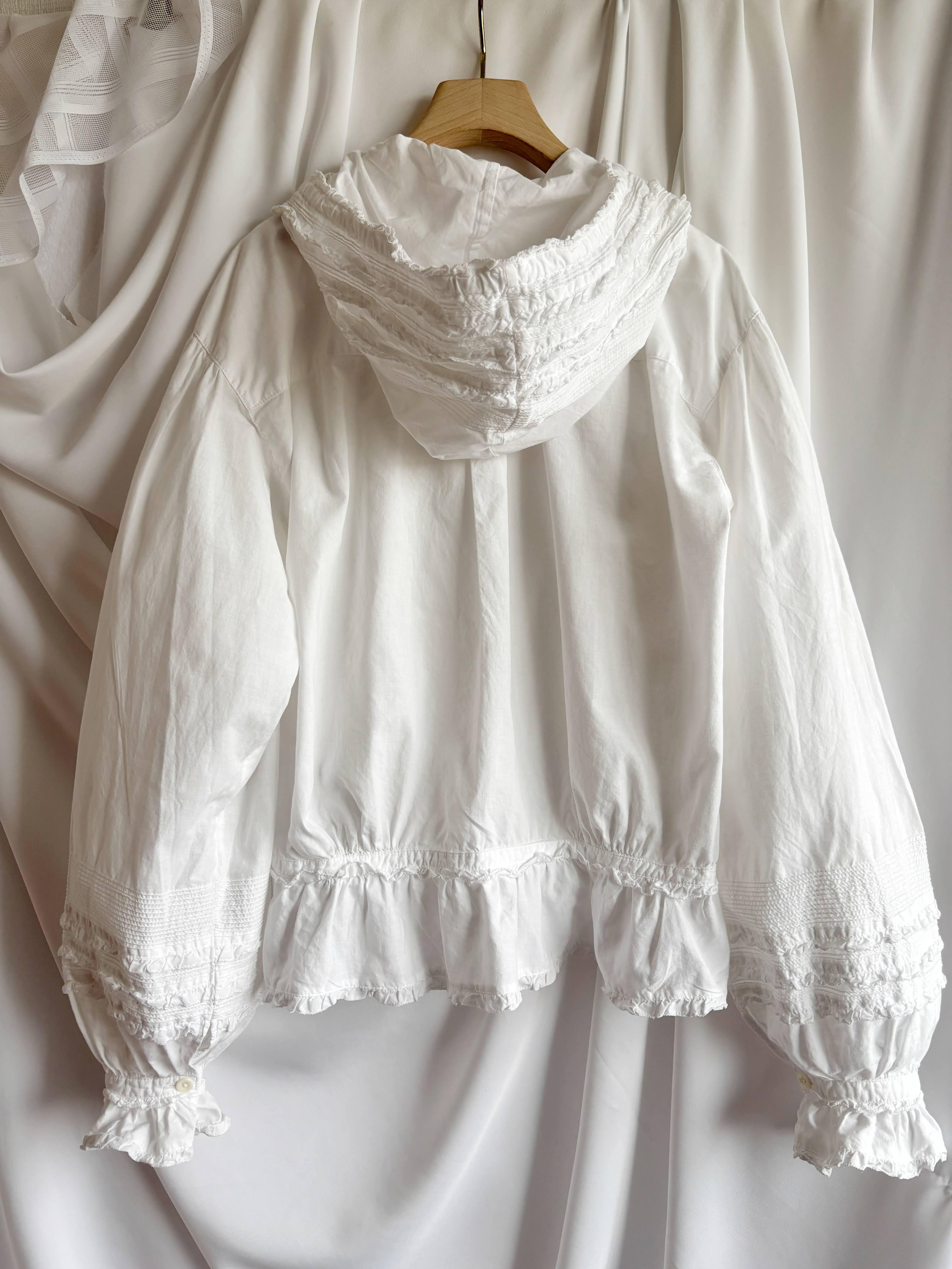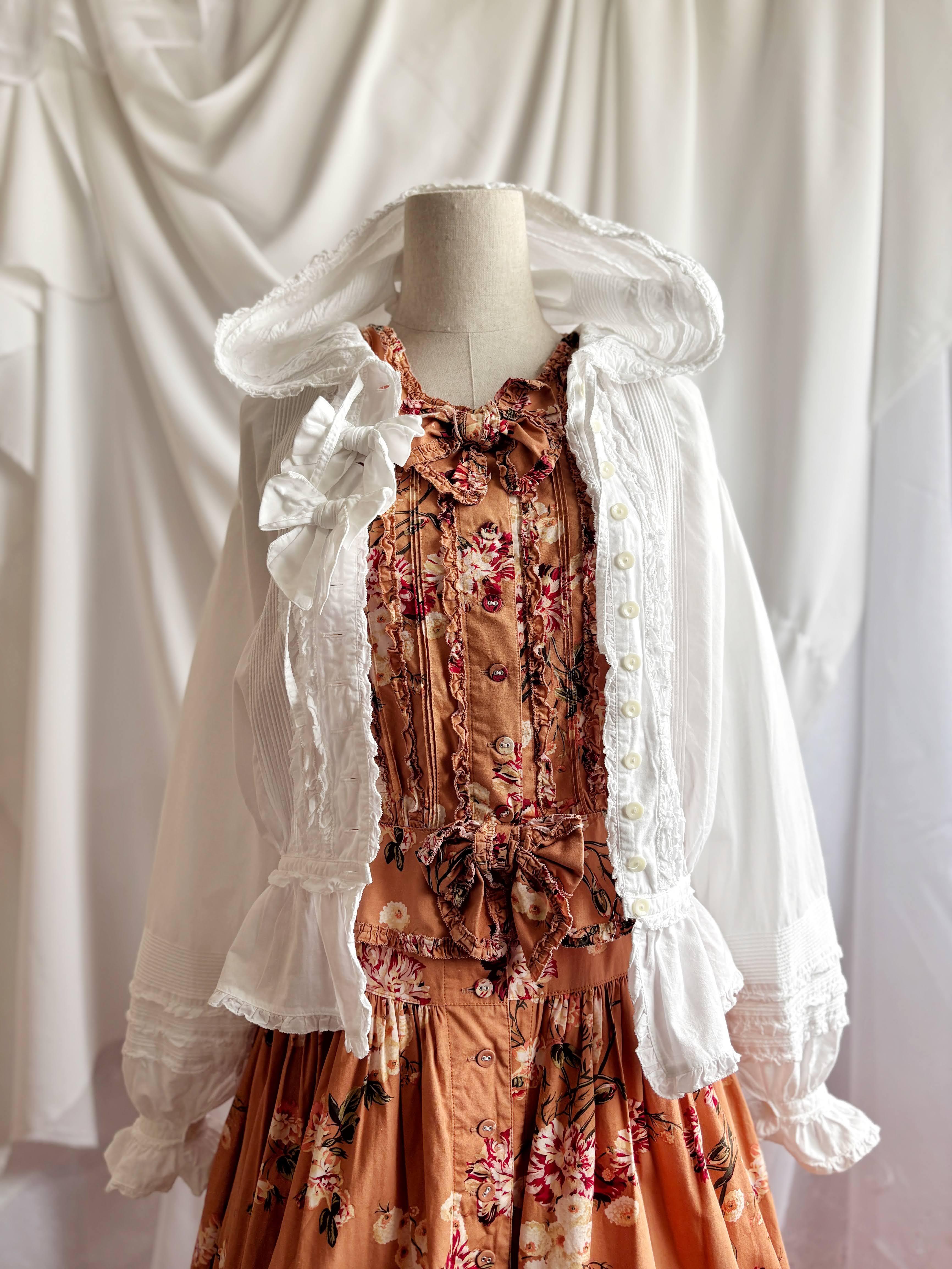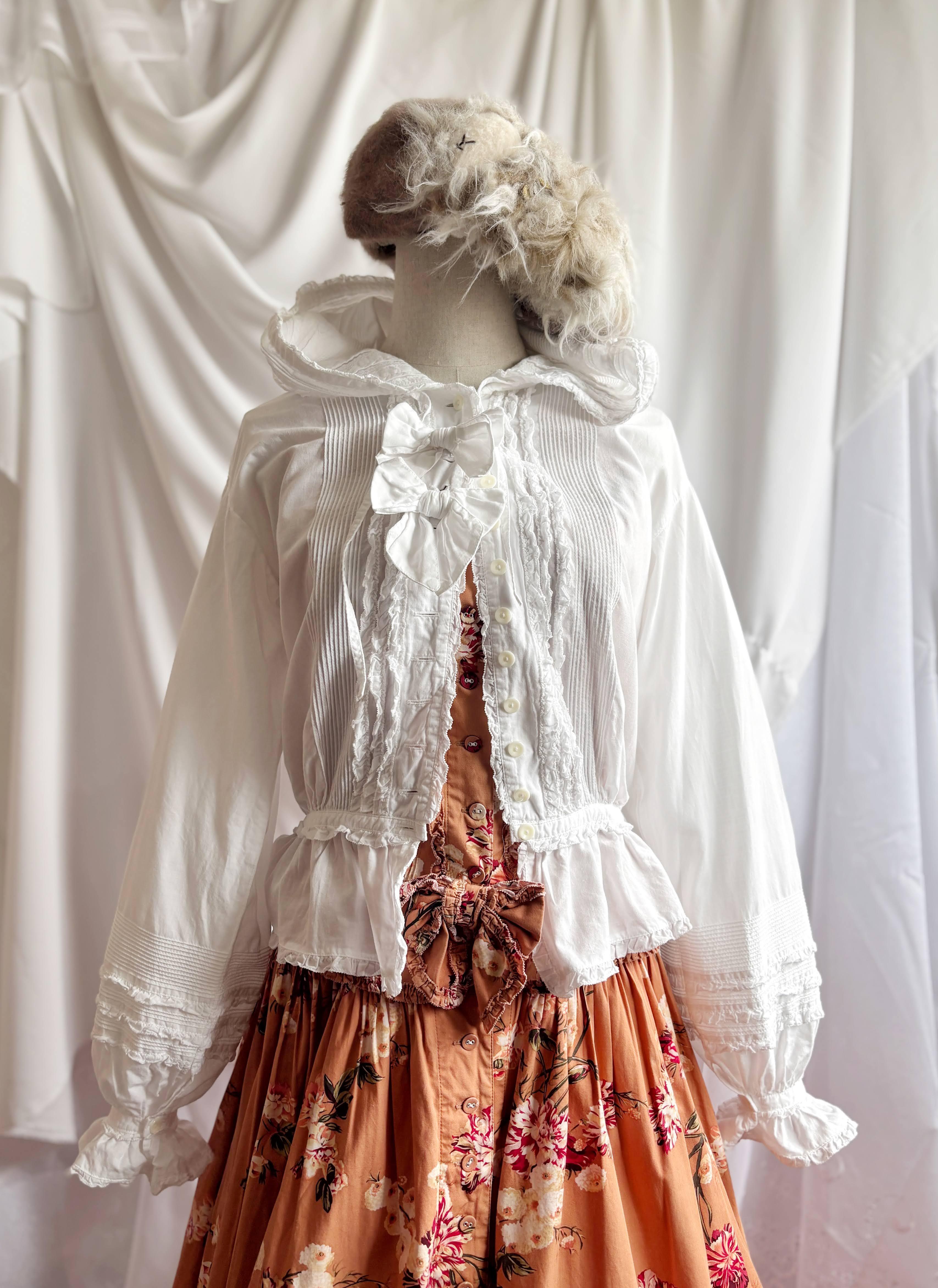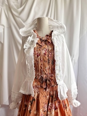 腰のところにギャザーが入るデザインですので、ワンピースやスカートなど、上から羽織る時にメリハリがつき、フリルがふわっとなる可愛いシルエットです。お袖もボリュームたっぷりでなんともロマンティック!1着あれば100人力なピンクハウスライフが楽しめます!