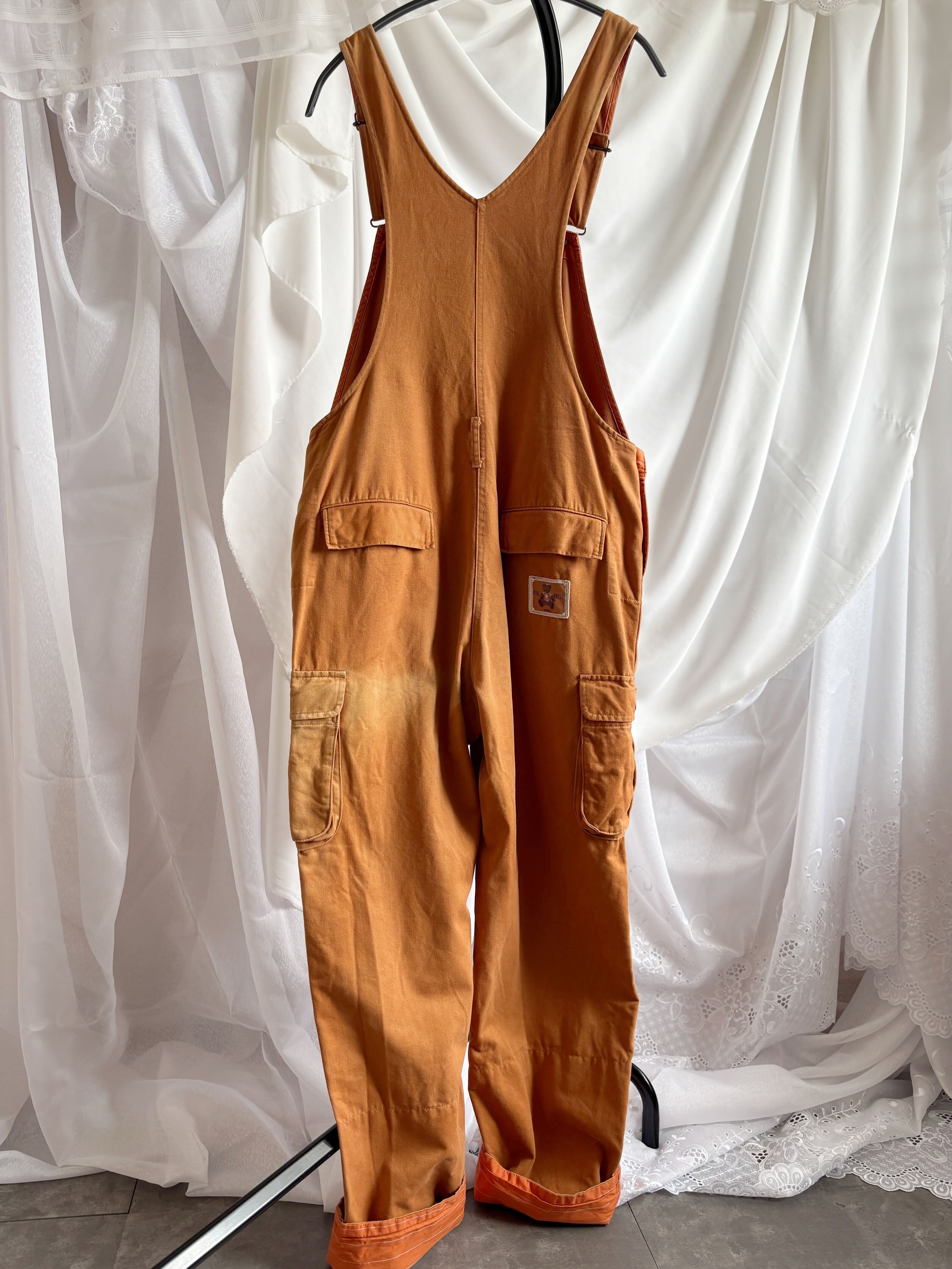 90年代のヴィンテージ品のため使用感や色あせが見られます。色褪せは主に左腰周り周辺に強く出ていますが、それらも含めて味わいがあって、個人的にはドンピシャの可愛さだと思っています。クマの刺繍の状態も良く、着用に支障があるような破れ等はございません。
