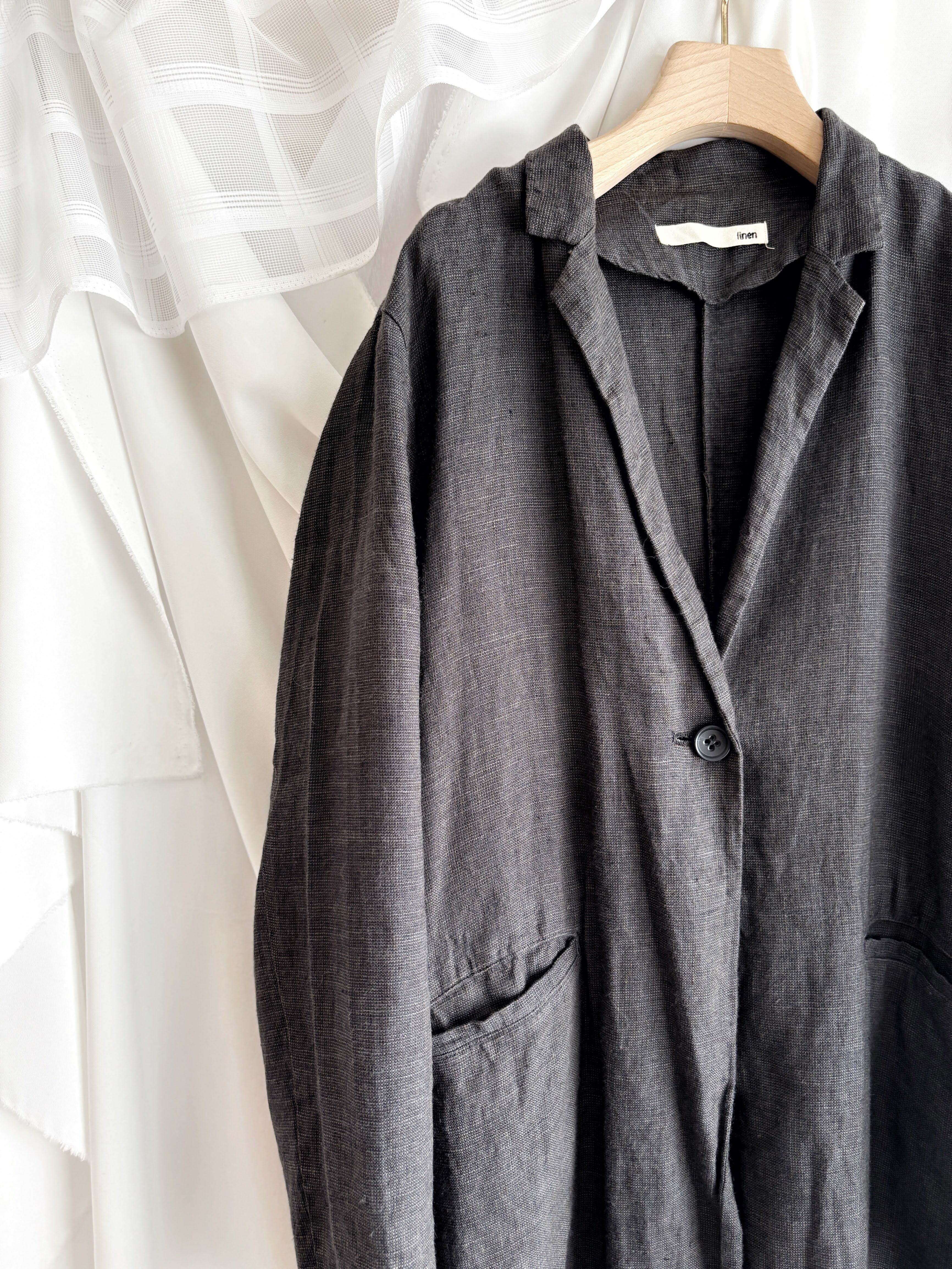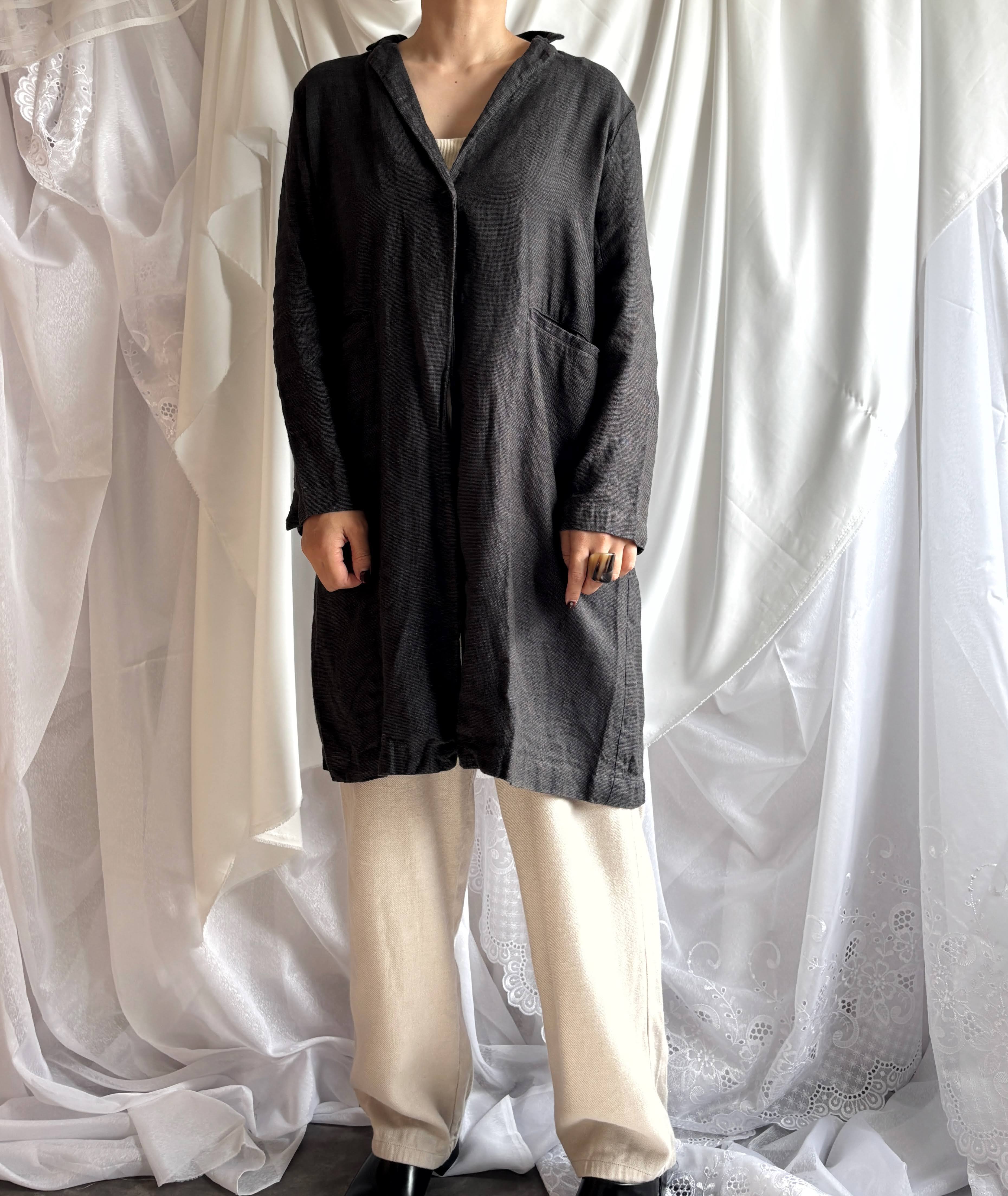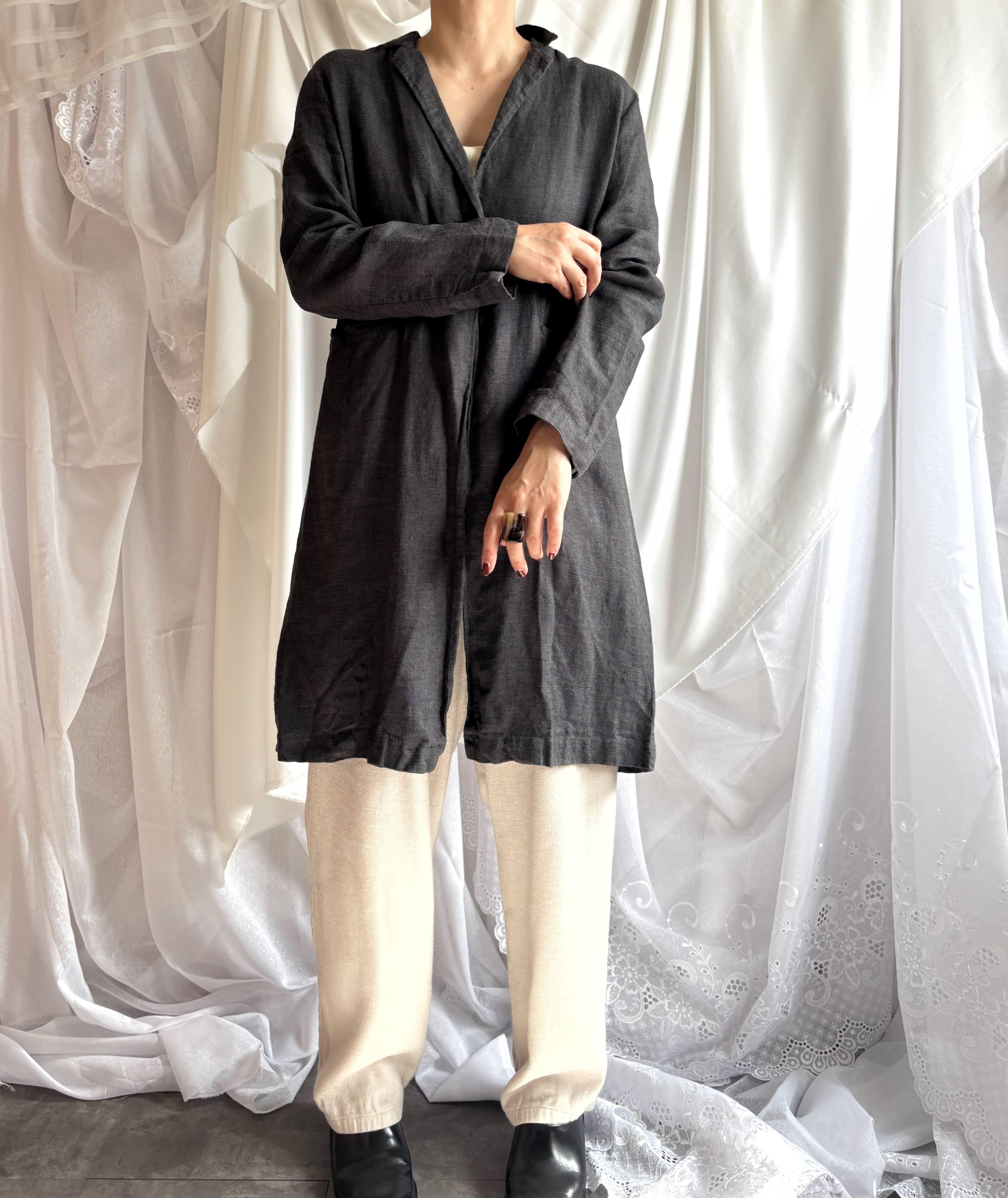 25133 リネン 麻 ライトアウター カーディガン ロングコート 長袖 ロングジャケット チャコールグレー