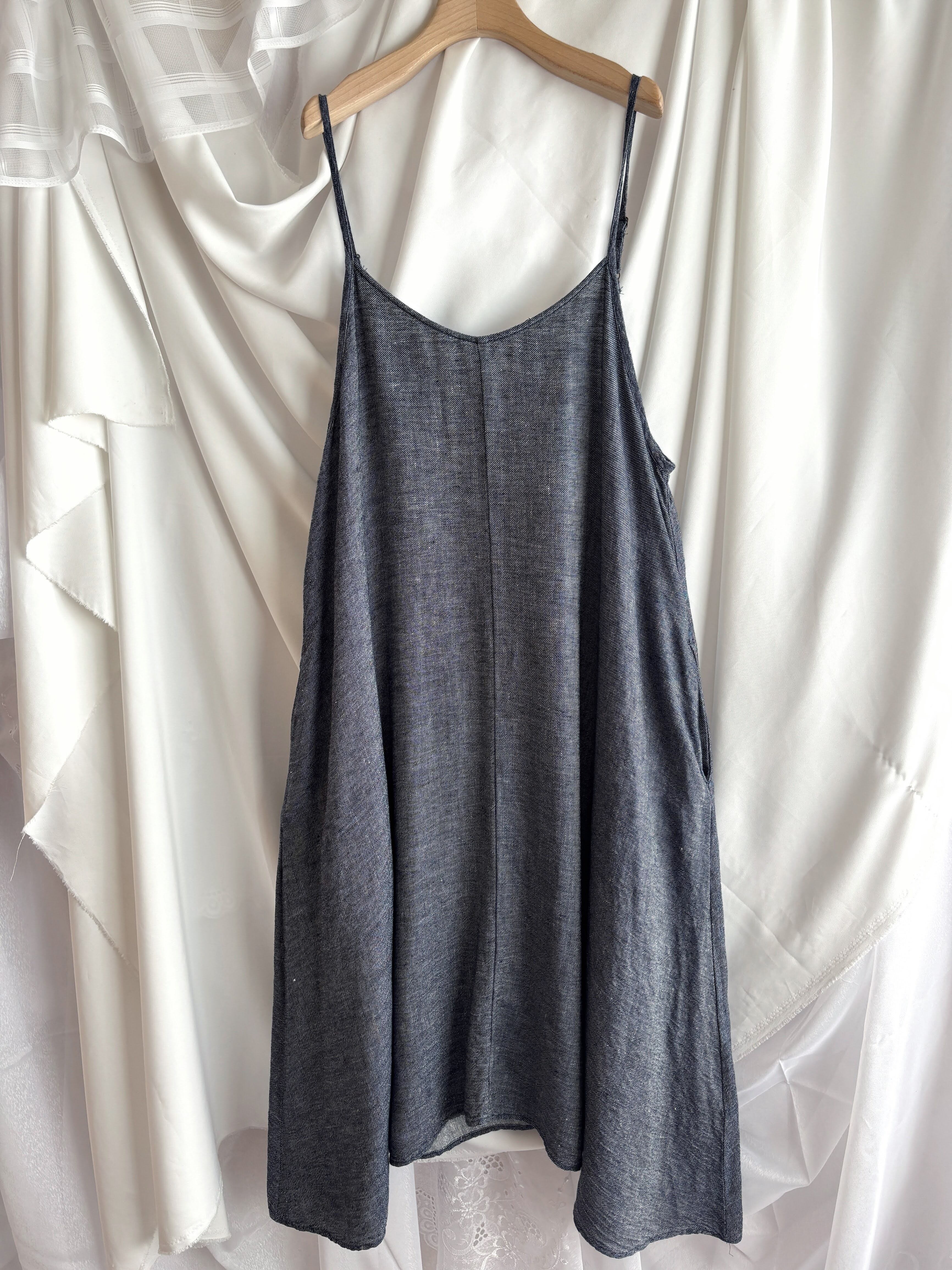 25152 リネン キャミソール ワンピース ロングワンピース キャミワンピ デニム ネイビー
