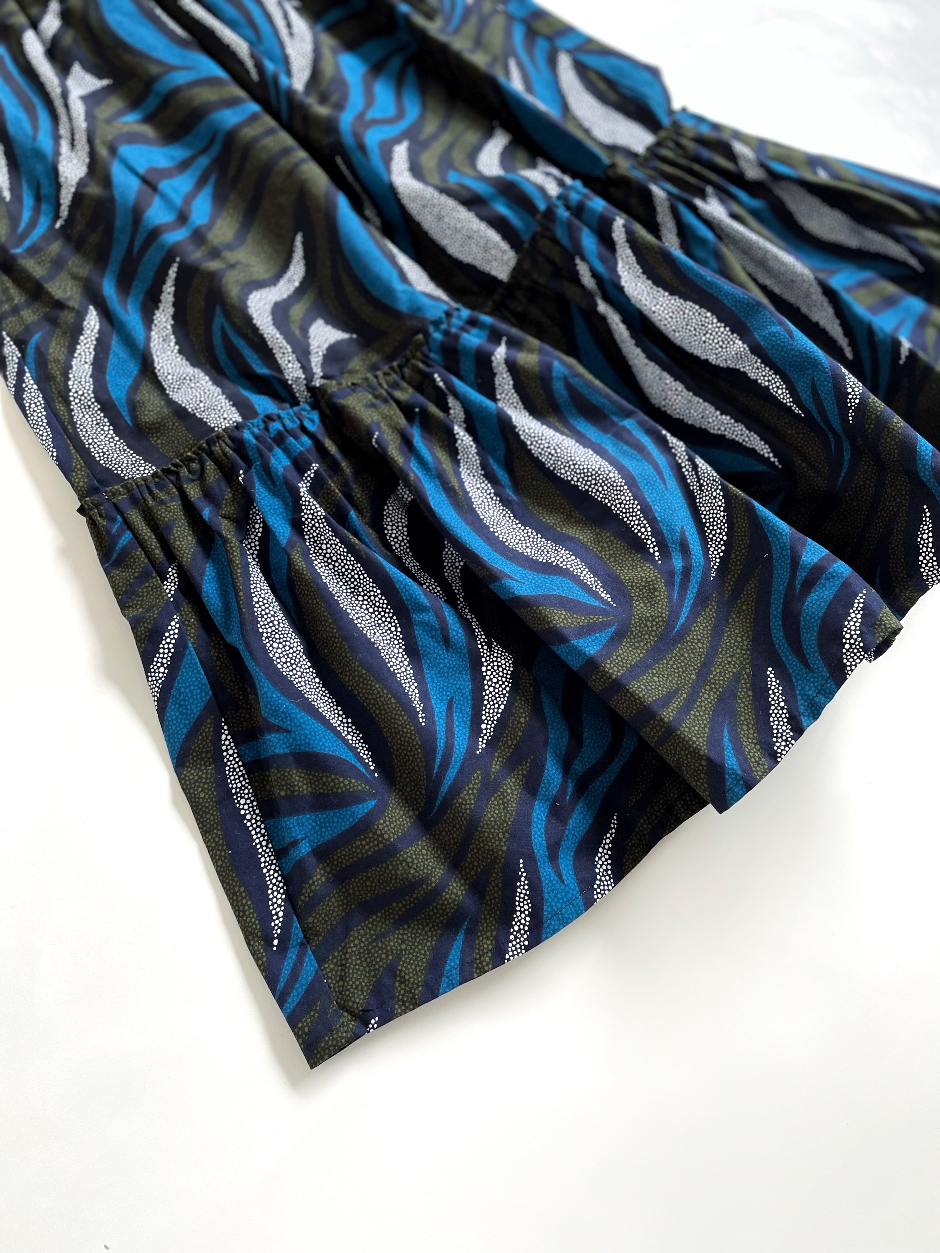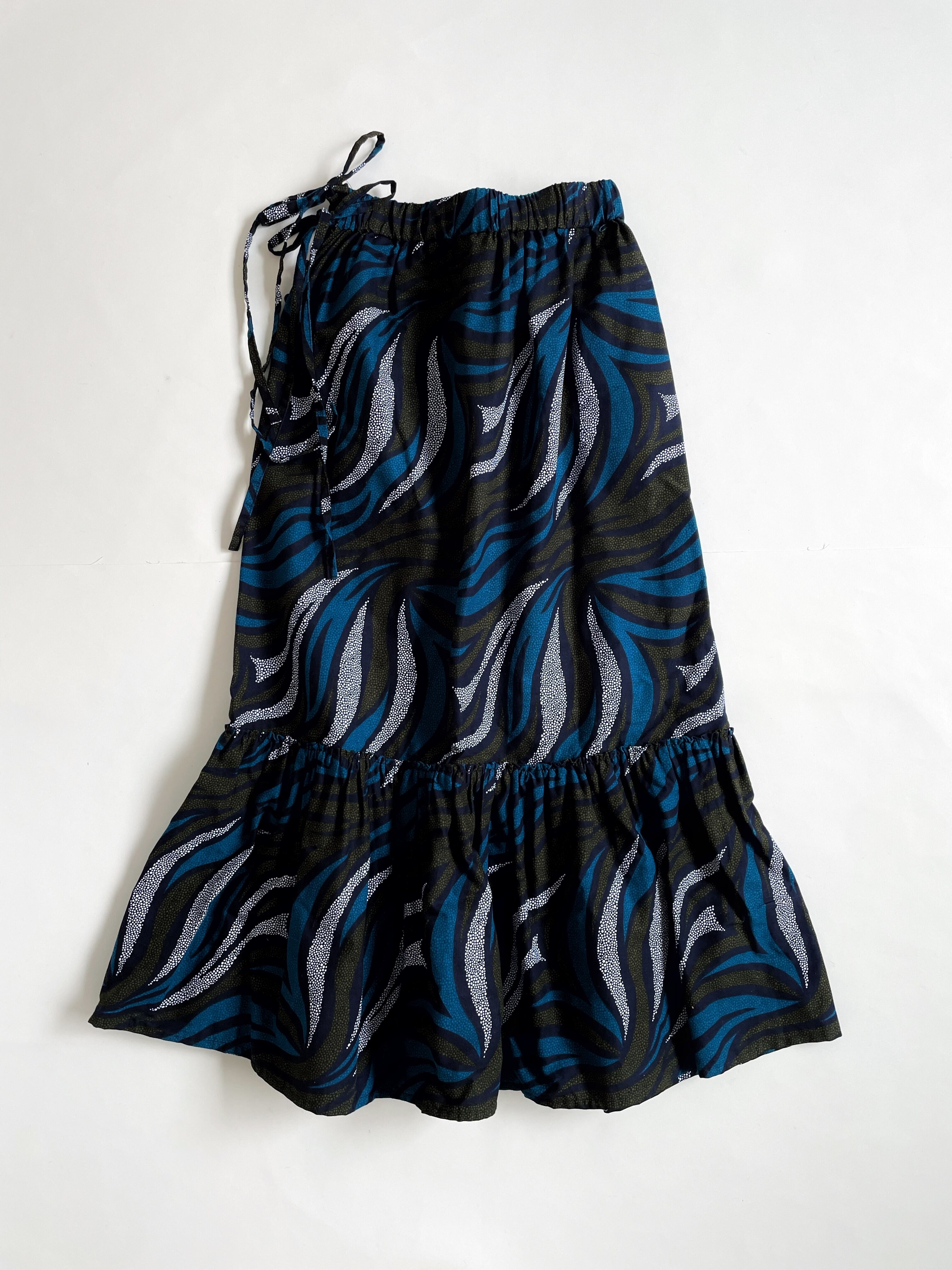 24095R アフリカン バティック エスニック マキシ丈 ロングスカート ティアードスカート 総柄 青