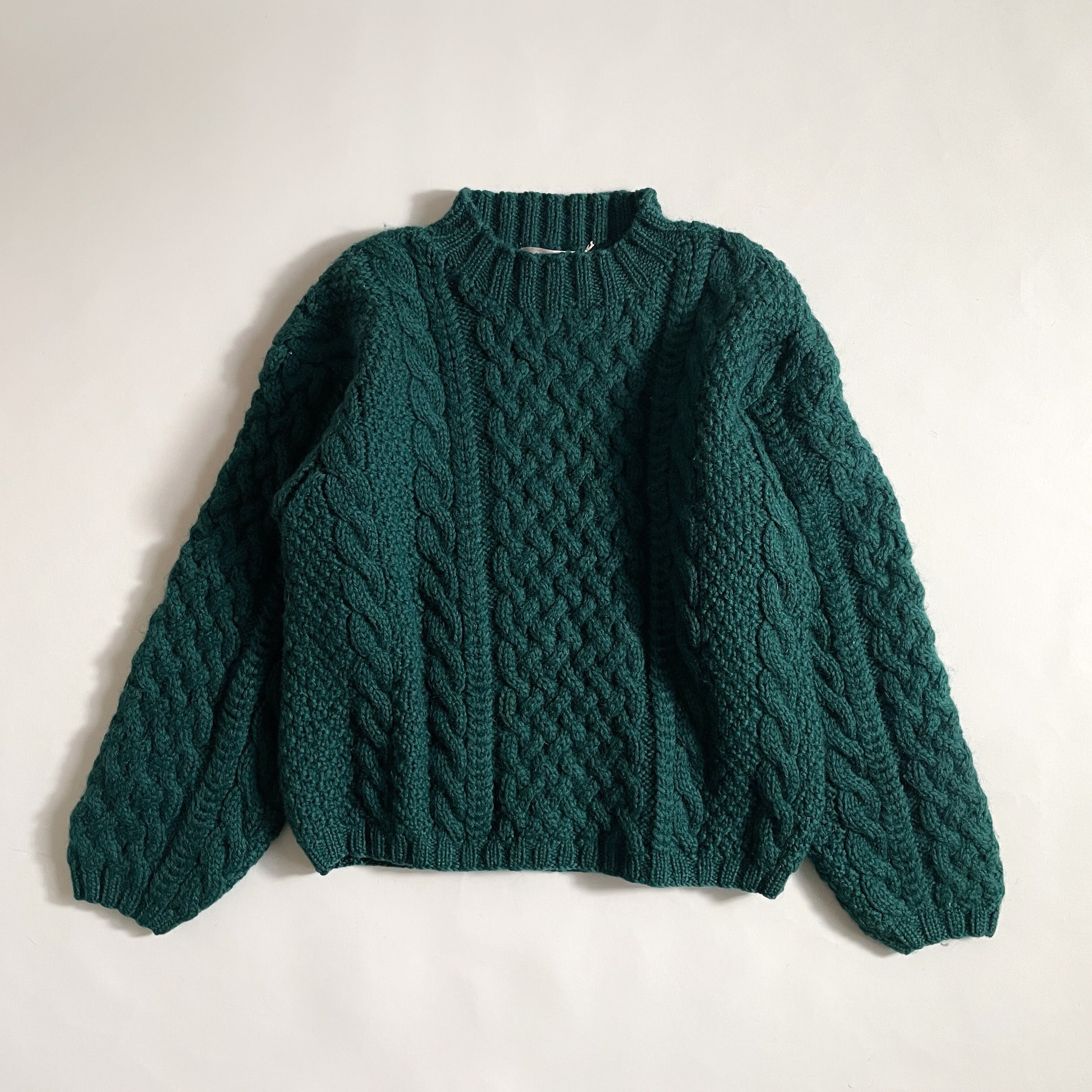 24232 ケーブルショート丈 ハイネックアランニット フィッシャーマン ヴィンテージ セーター 長袖 グリーン