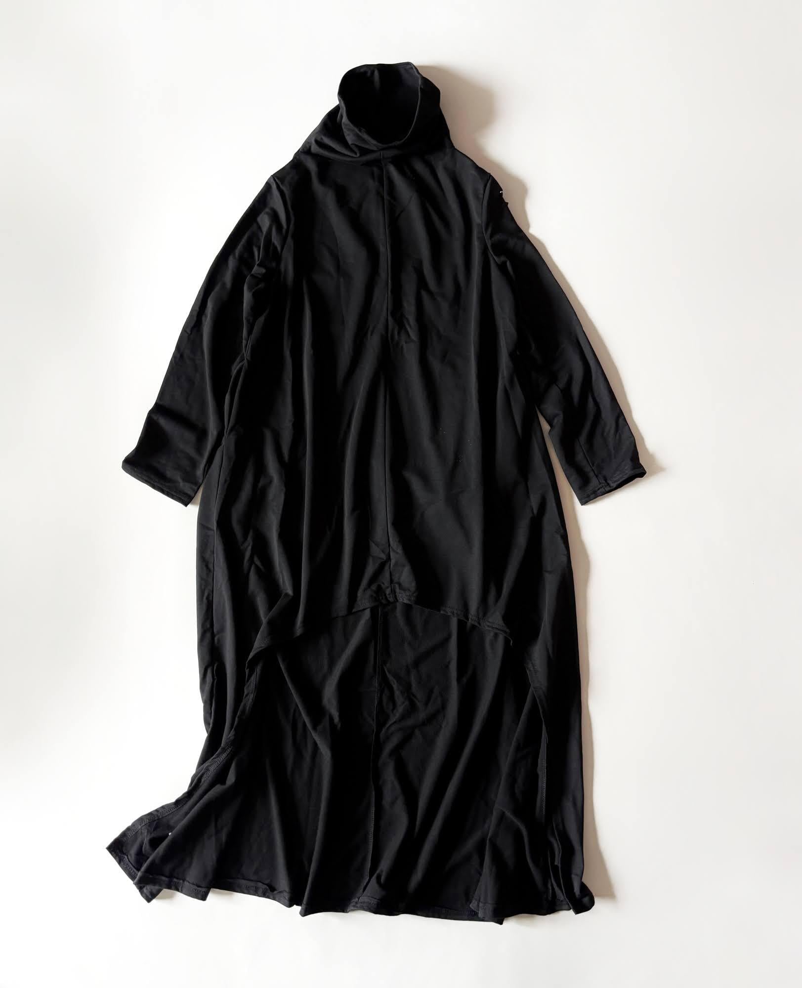 インポート タートルネック ラウンドカット ロングワンピース カットソーワンピース ブラックワンピース 長袖 コットン ブラック