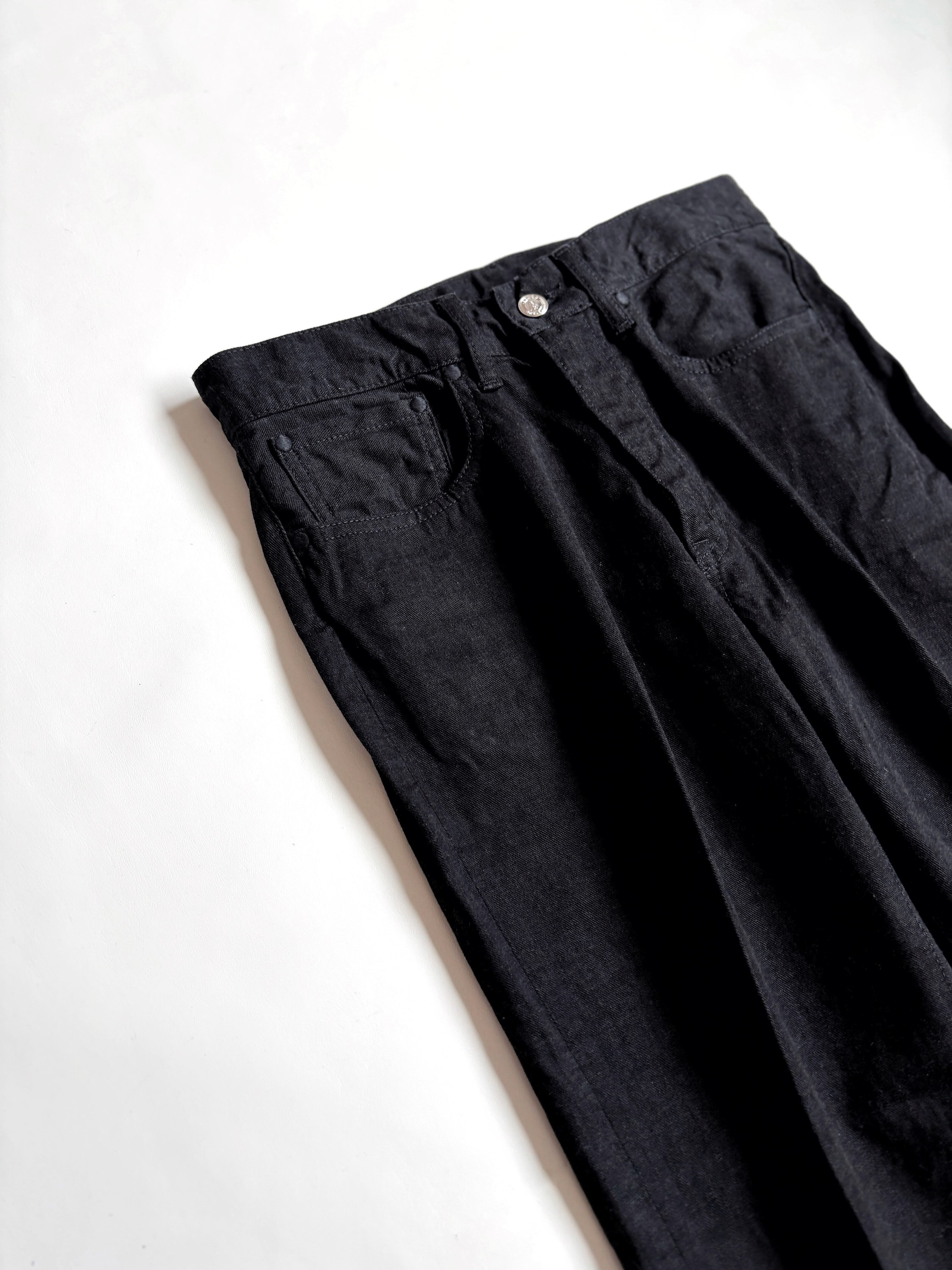 井原デニムで仕立てられたブラックジーンズ