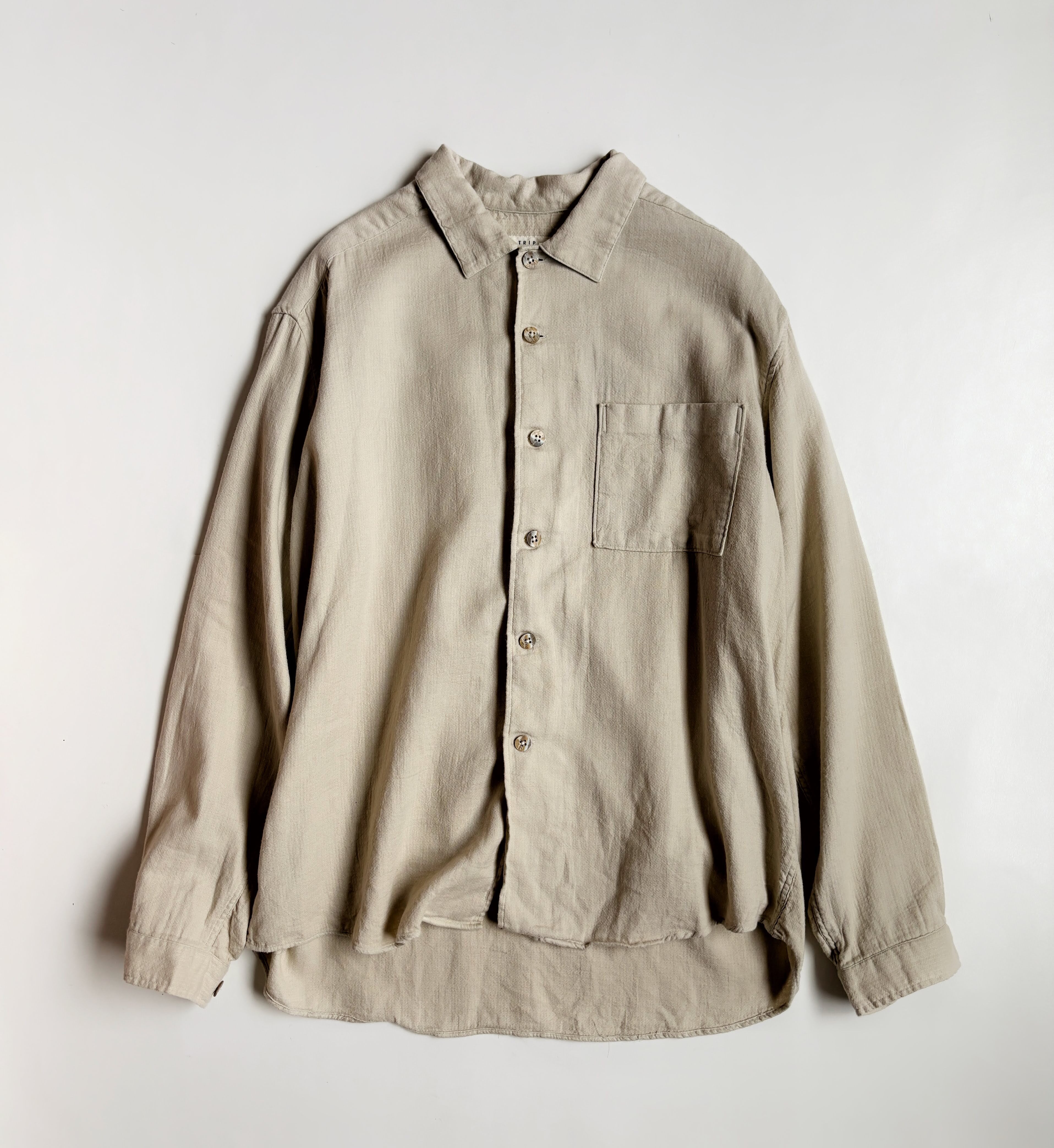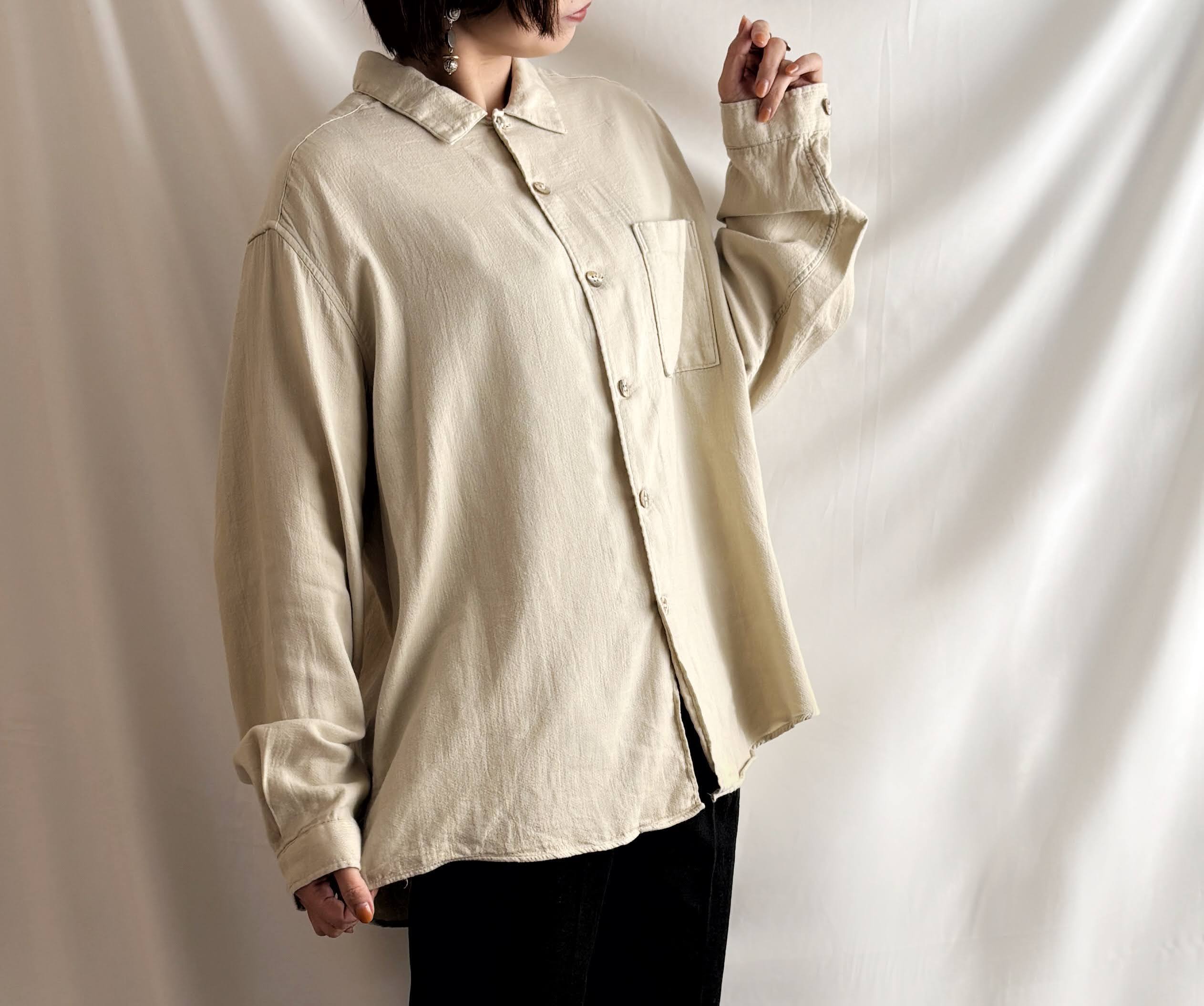 24273 ガーゼ 木綿 シャツ ポケット コットン 長袖 ベージュ ナチュラル